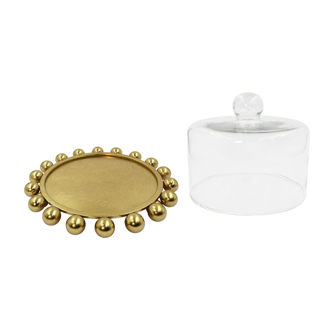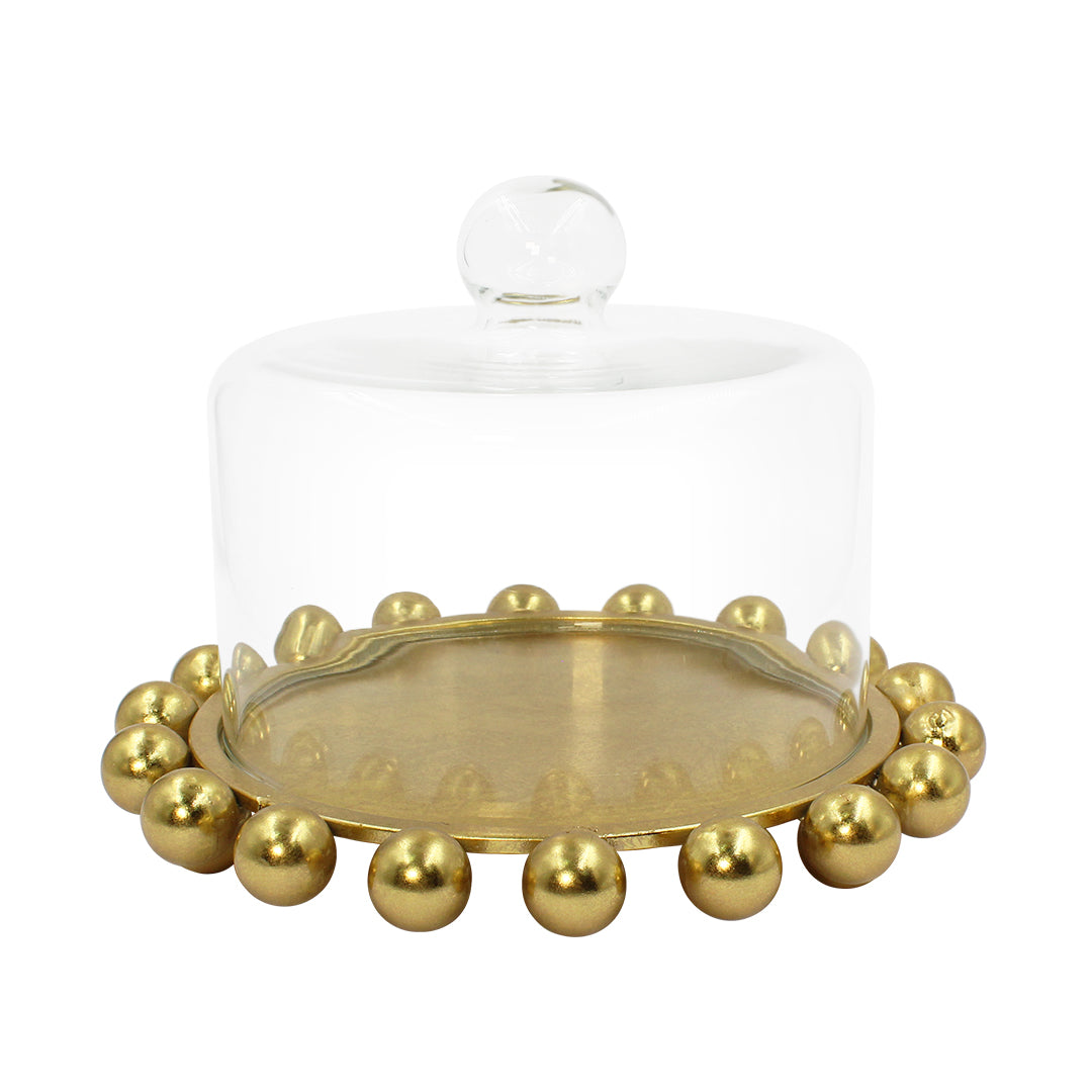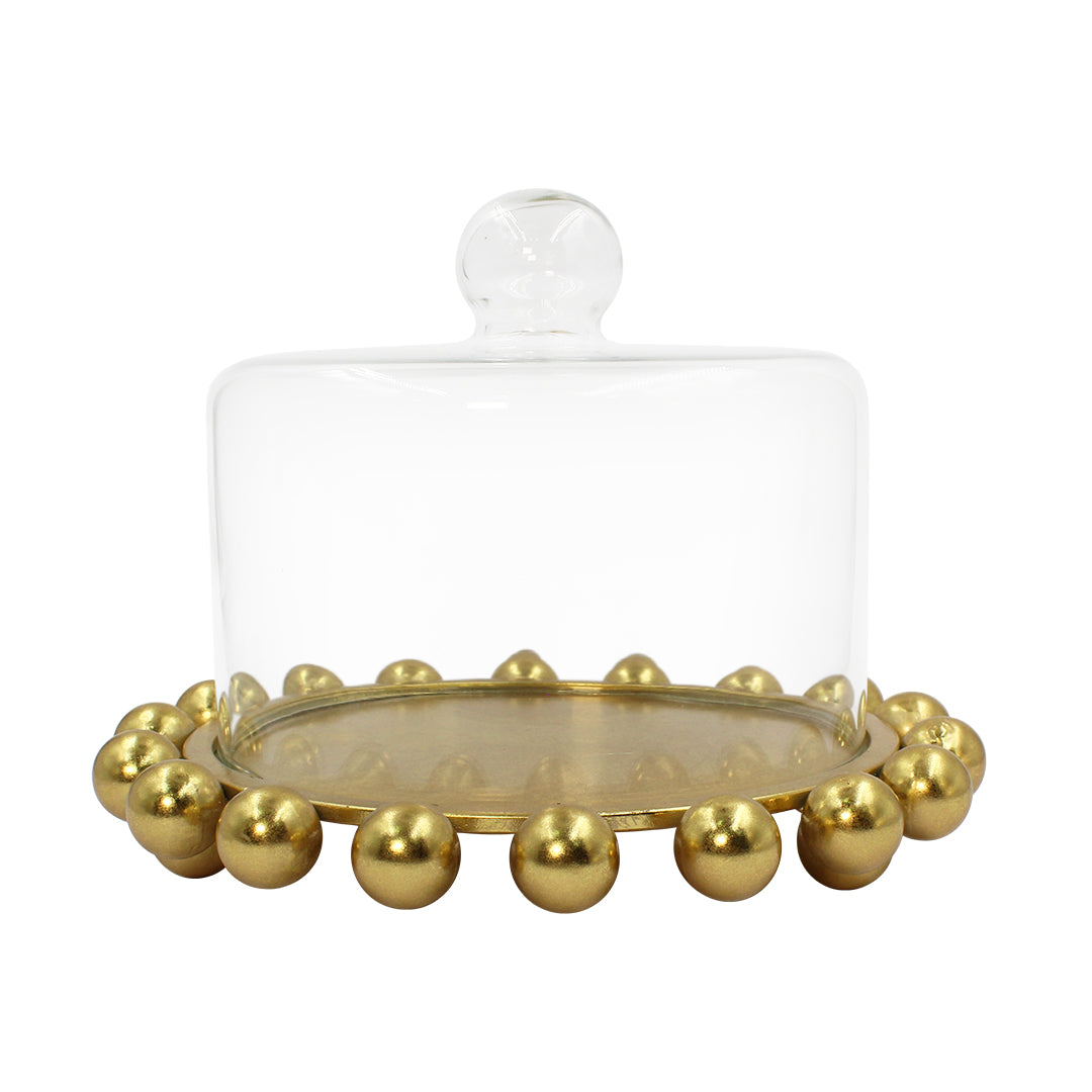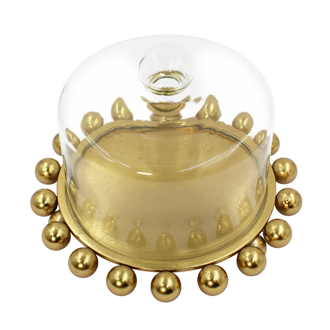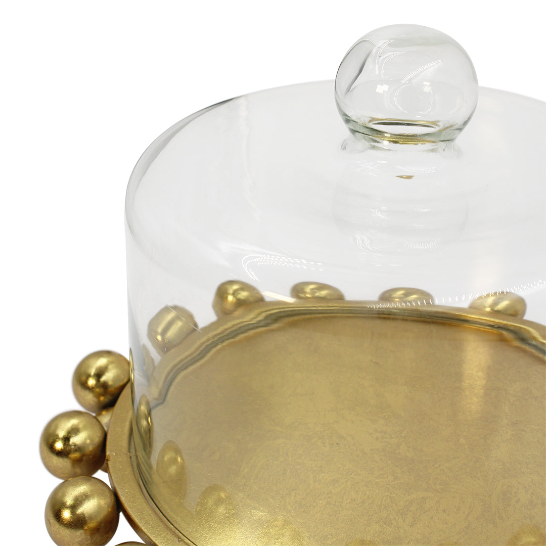Compuesto por un domo de vidrio con una base de metal, este elegante accesorio es ideal para restaurantes y complemento para tu cocina. Perfecto para decorar tu espacio, creando un ambiente sofisticado y moderno.