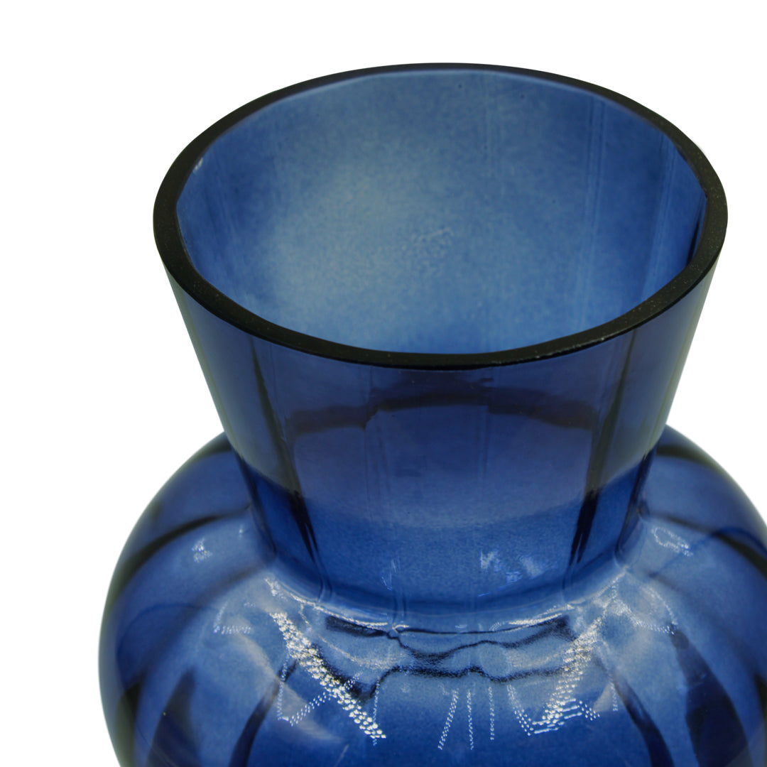 La elección perfecta para los amantes de la decoración. Con sus formas orgánicas y transparencia, este florero es ideal para exponer pequeños ramos o conjuntos florales. Su acabado azul refleja la luz, agregando calidez y elegancia a cualquier espacio.