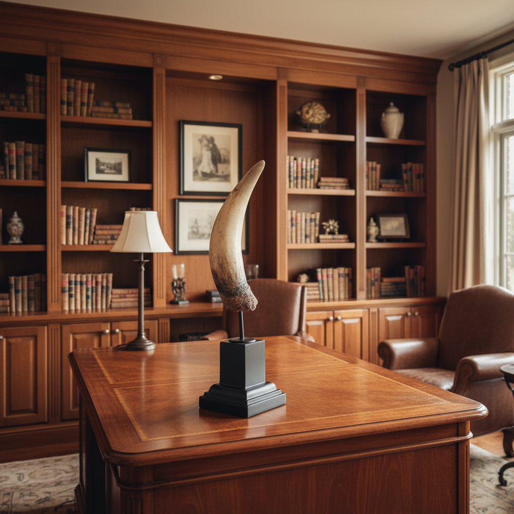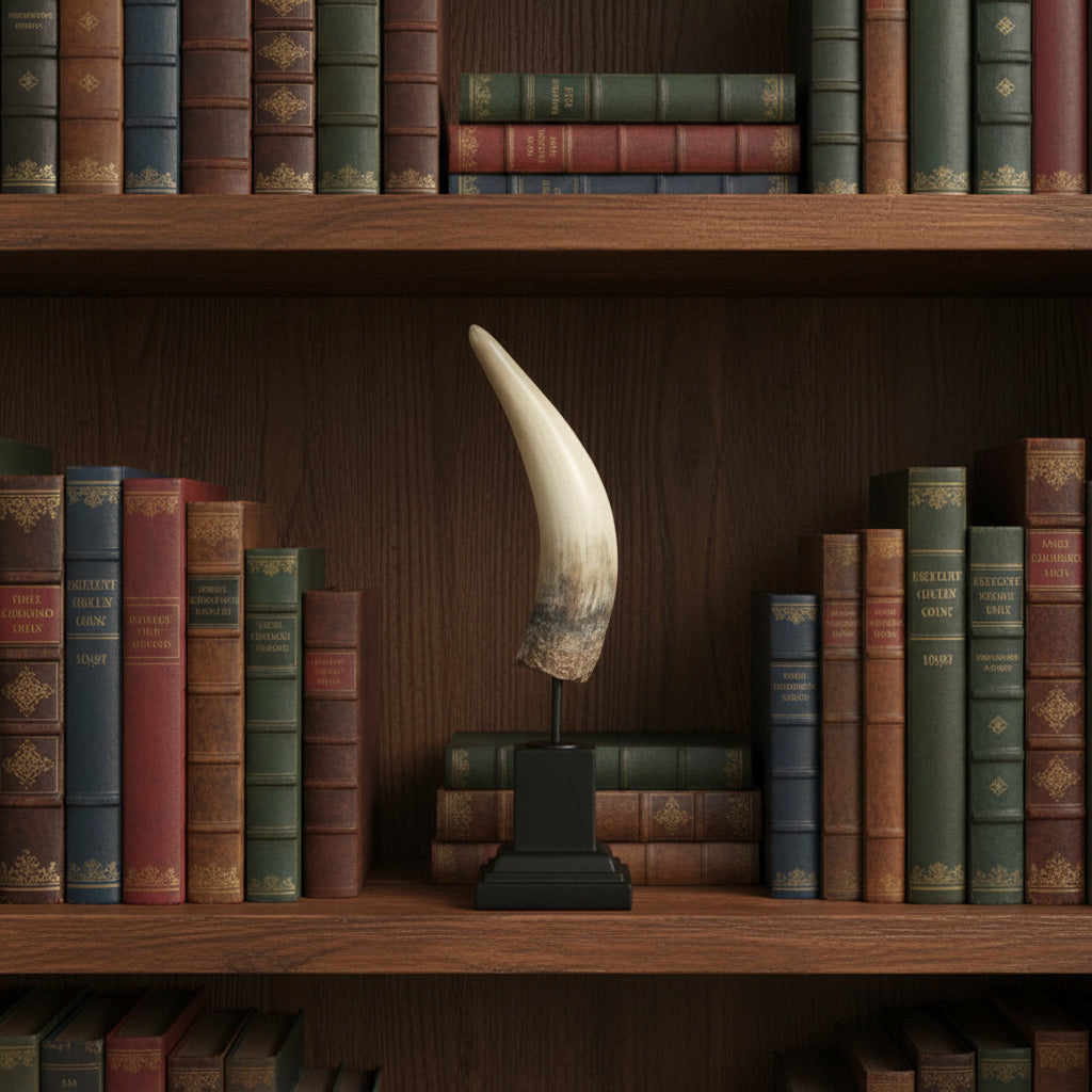Escultura Decorativa Simulación Cuerno en Resina con Soporte