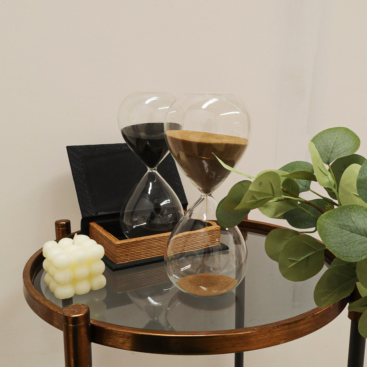 Este elegante reloj decorativo con formas orgánicas y sutiles, fabricado en vidrio con una característica arena en color dorado .La combinación de materiales y su forma curva lo hacen una pieza sofisticada y moderna, perfecta para añadir un toque de estilo a cualquier habitación.