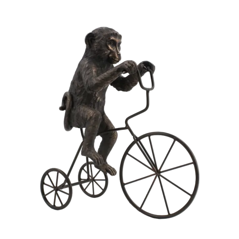 Figura Decorativa Mono de resina montando una bicicleta de metal